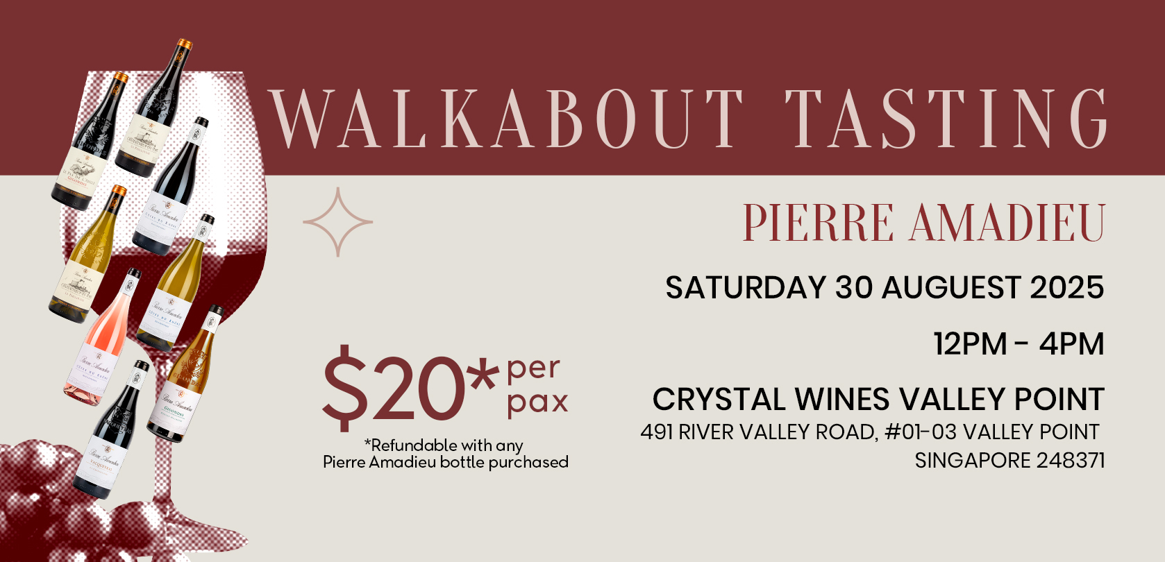 Price: $20 per pax (Refundable with any Pierre Amadieu bottle purchased)