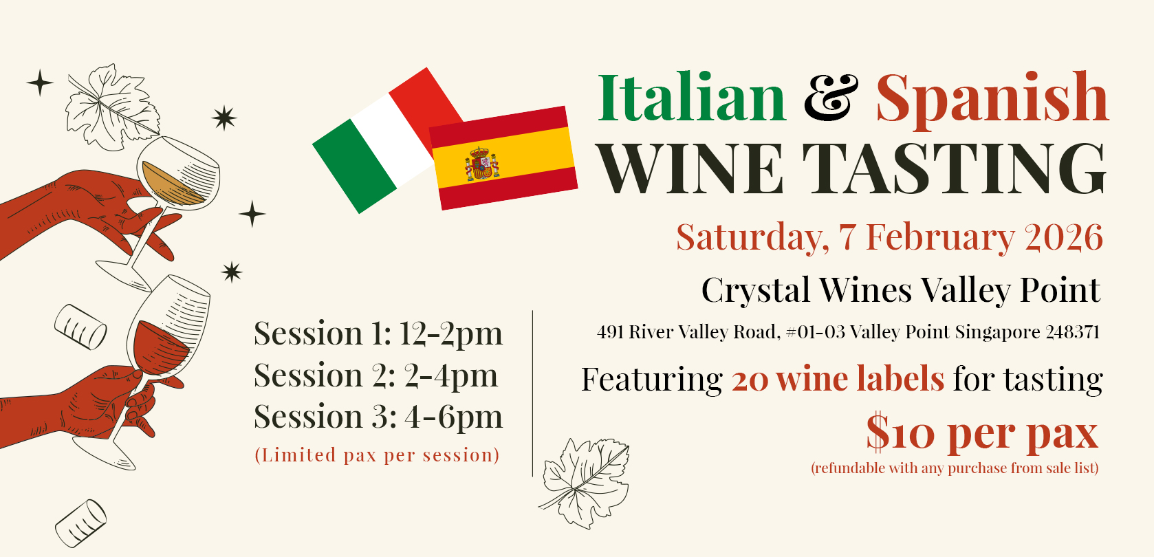 Home>Dinner & Tasting Events>[7 February 26] Italian & Spanish Wine Tasting